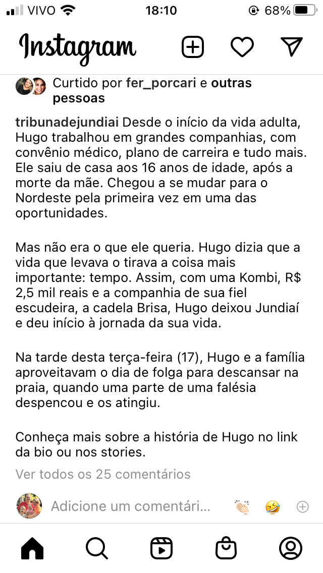 Meu Deus! Que a sua família possa ser confortada. Não deve ser fácil perder um filho “cheio de vida” como ele era, especialmente nessas condições. Foi, inclusive, matéria de TV por rodar o Brasil. Um cara que gostava de viver!