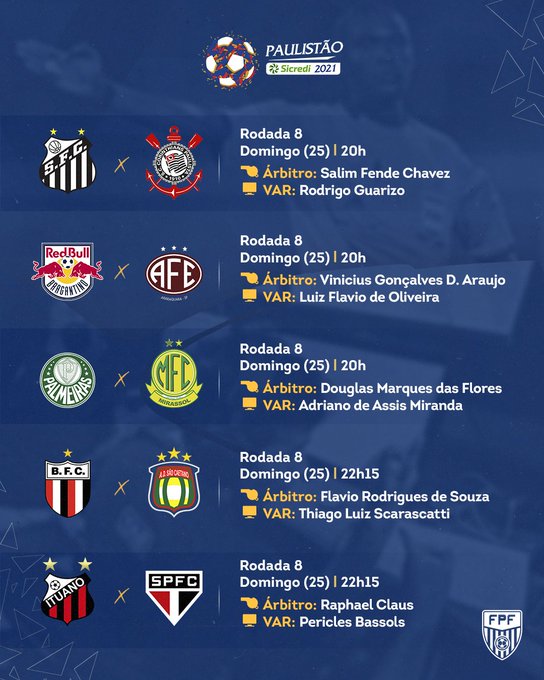 – Na lista de jogos desse domingo, há pouco publicada, a Federação Paulista coloca em destaque o nome do Árbitro juntamente com o VAR. Mas e os bandeiras? E o quarto-árbitro? E os AVARs?