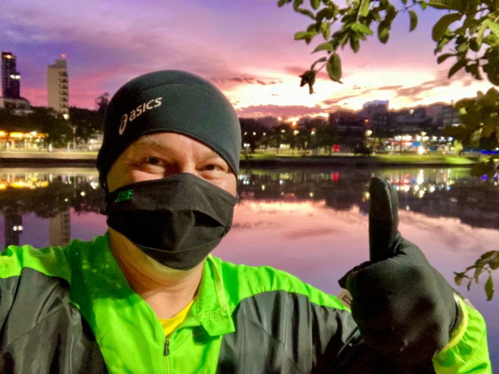 Para tanto, há de se ter força de vontade – e isso vale a pena! Acordar cedo sempre foi muito tranquilo para mim, pois sou amigo das madrugadas. Do frio, confesso, não gosto. Mas equipando-se muito bem (como na foto abaixo, durante essa semana, no Lago do Taboão, em Bragança Paulista, com 7ºC), dá-se um jeito.
