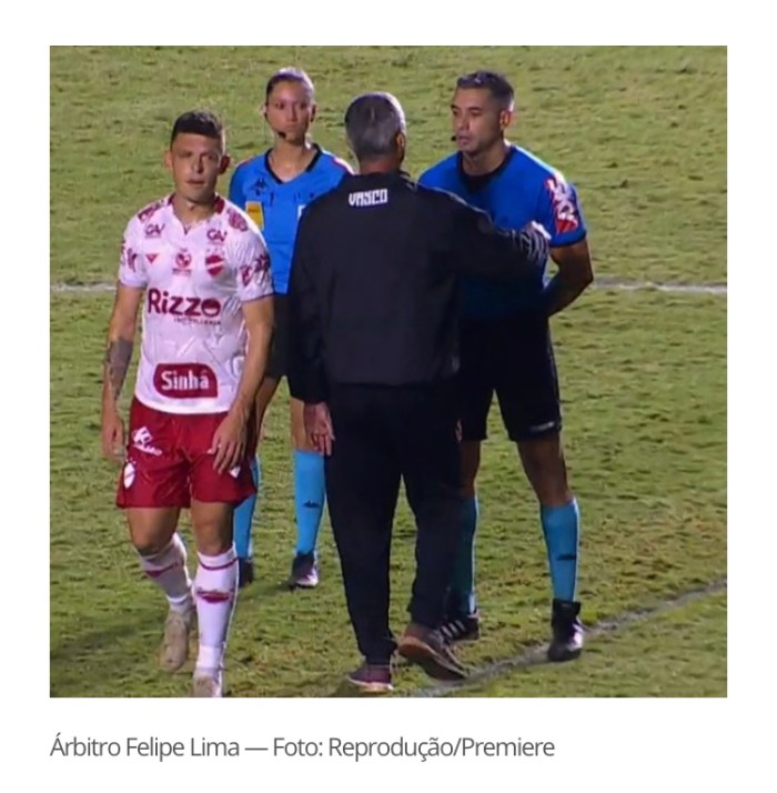 Digo isso pois Felipe Fernandes de Lima (MG), um jovem árbitro que está sendo testado (apitou Flamengo x São Paulo recentemente, que foi sua grande oportunidade dada por Leonardo Gaciba), foi flagrado pela Sportv durante Vasco 1×0 Vila Nova pelo Campeonato Brasileiro da Série B com fala prepotente à divisão que estava apitando.