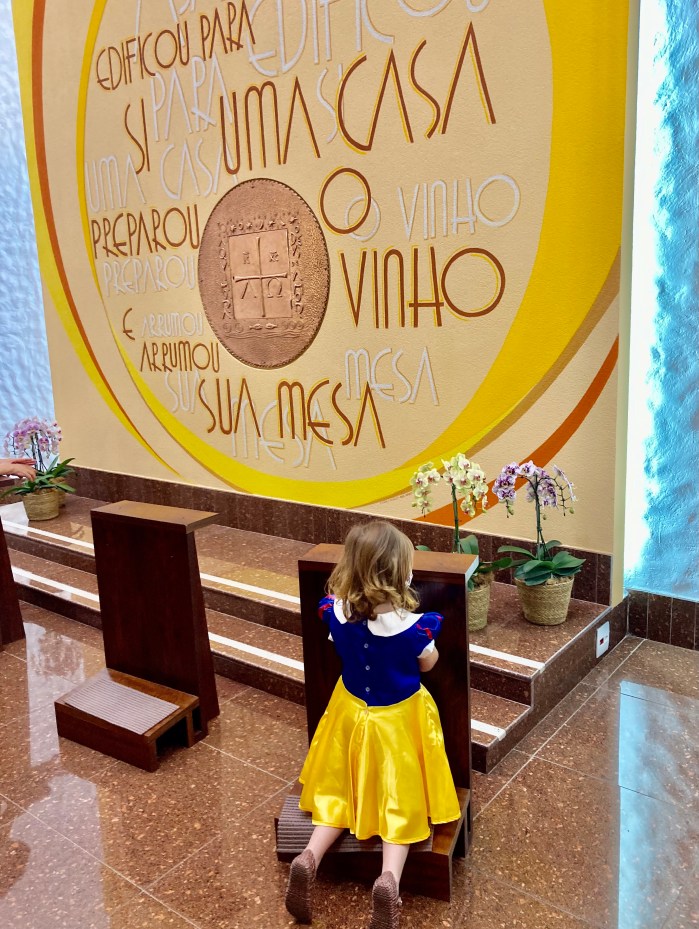 Neste clique, minha pequena Maria Estela “Branca de Neve”, diante do Santíssimo, pediu (como uma candidata à Miss) pela “Paz no Mundo”.