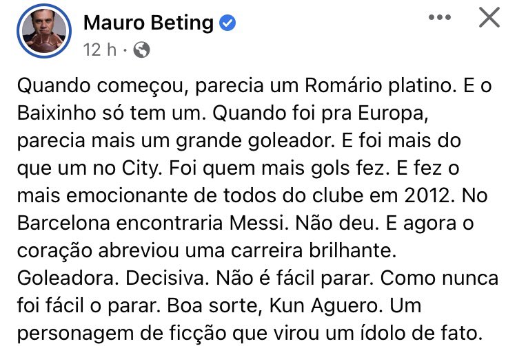 – Kim Aguero: boa sorte nos novos rumos. dezembro 15, 2021 Rafael Porcari Sem categoriaEsporte, Futebol, Saúde O texto do Mauro Beting sobre o Aguero é algo curto, específico e tocante. Sensacional. Não é fácil o cara ser obrigado a parar de jogar por problema de saúde. Compartilhe isso: Clique para enviar um link por e-mail para um amigo(abre em nova janela) E-mail Clique para imprimir(abre em nova janela) Imprimir TweetCompartilhar no Tumblr Clique para compartilhar no Reddit(abre em nova janela) Reddit Pocket Clique para compartilhar no Telegram(abre em nova janela) Telegram Clique para compartilhar no WhatsApp(abre em nova janela) WhatsApp Clique para compartilhar no Threads(abre em nova janela) Threads Clique para compartilhar no Mastodon(abre em nova janela) Mastodon Clique para compartilhar no Nextdoor(abre em nova janela) Nextdoor Clique para compartilhar no Bluesky(abre em nova janela) Bluesky Curtir Carregando... Relacionado