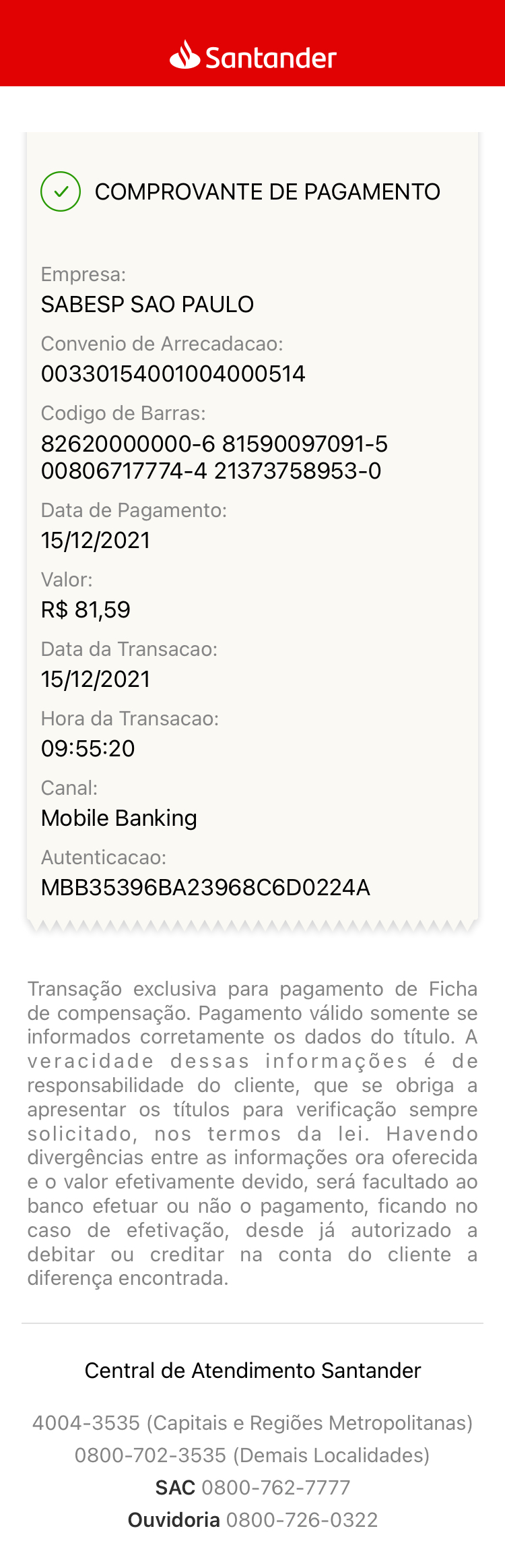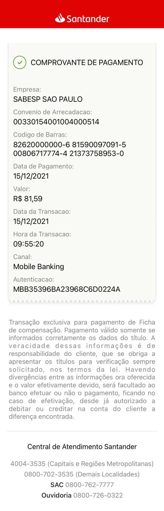 Anexo o comprovante… (Desagradável, já mandei mensagem por todos os canais e continuam me cobrando. Conta que venceria dia 23/12/2021, paguei dia 15, e fico recebendo cobranças de atraso).