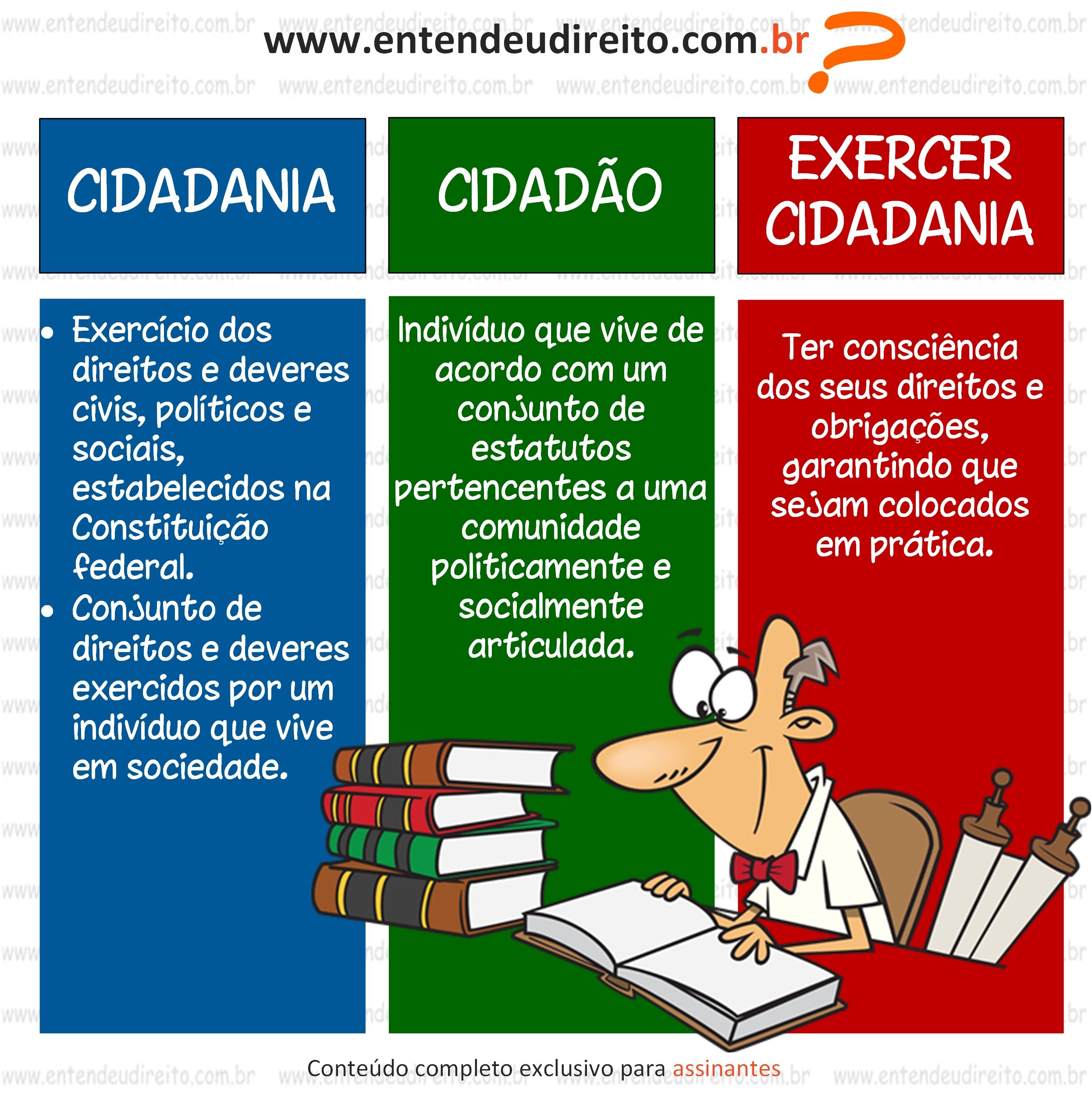 Olhe só que resumo bacana: O que é ser cidadão, conceituando cidadania e o exercício dela, bem definidos: