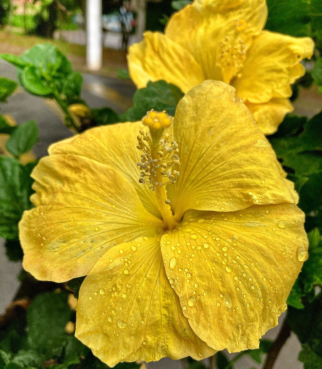Estou suado, cansado e feliz, alongando e curtindo a beleza da natureza. Hoje, com essas delicadas plantas: hibiscos amarelos.