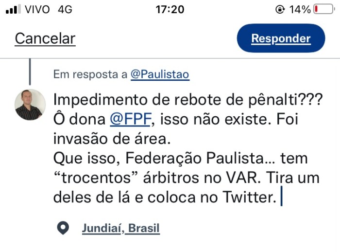 Observação: o que não pode é quem comanda o Twitter da FPF escrever uma barbaridade como essa abaixo: