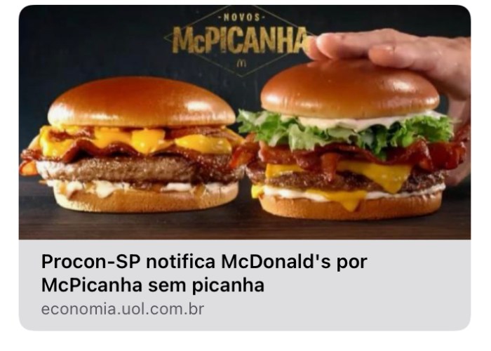 E ao PROCON, admitiu isso e lamentou que o consumidor “tenha se confundido” com os anúncios do lanche?
