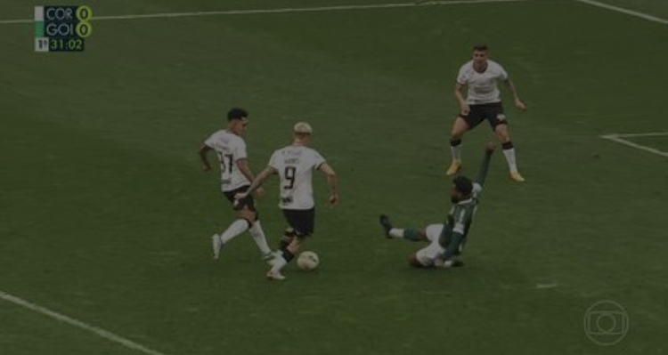 Que ridículo o pênalti marcado na Arena Itaquera! Jogador com o braço no chão, sem qualquer influência na jogada.
