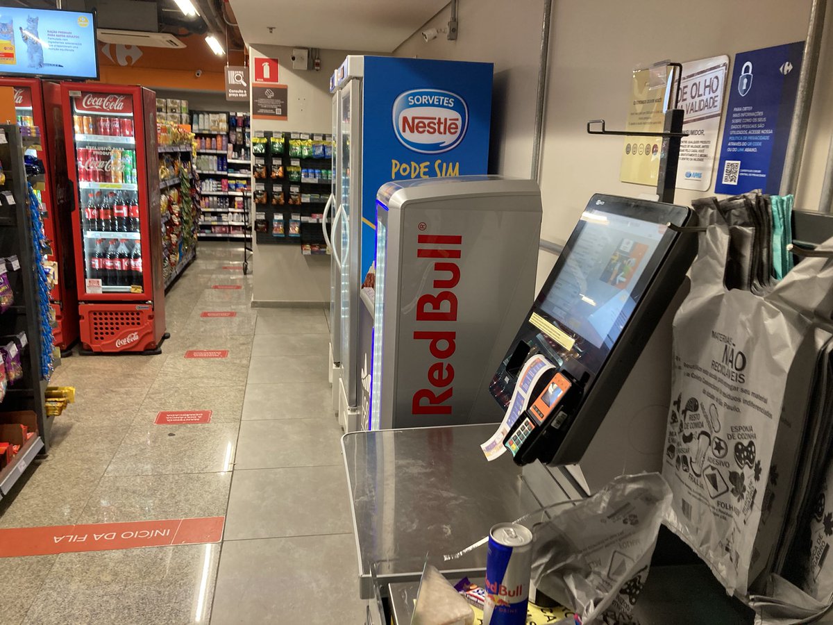 Coisas da modernidade: agora, 1h45 da madrugada, estou saindo de um hospital em São Paulo, e há um “Carrefour Express”. NENHUM funcionário, totalmente auto-serviço. Você compra, passa no caixa-eletrônico e quita sozinho. Ninguém para conferir ou atender.