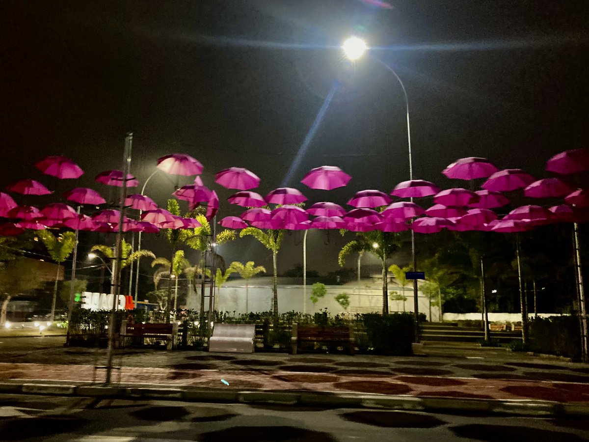Na Praça da Poesia, os guarda-chuvas amarelos do #SetembroAmarelo foram trocados por esses novos: afinal, estamos no #OutubroRosa!