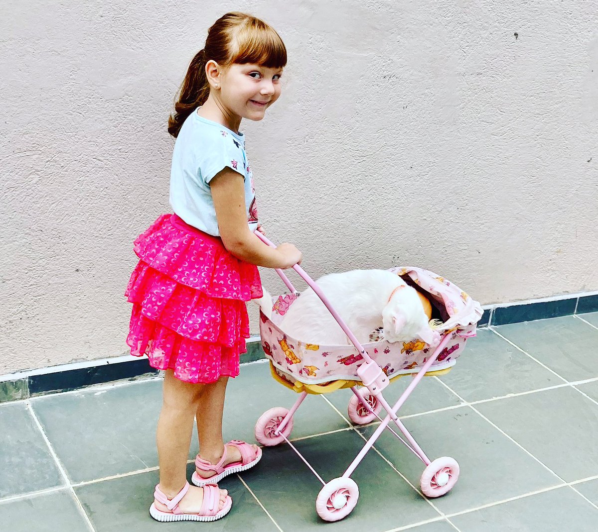 Alguém trocou o passeio com a boneca por um passeio com a… gatinha!
