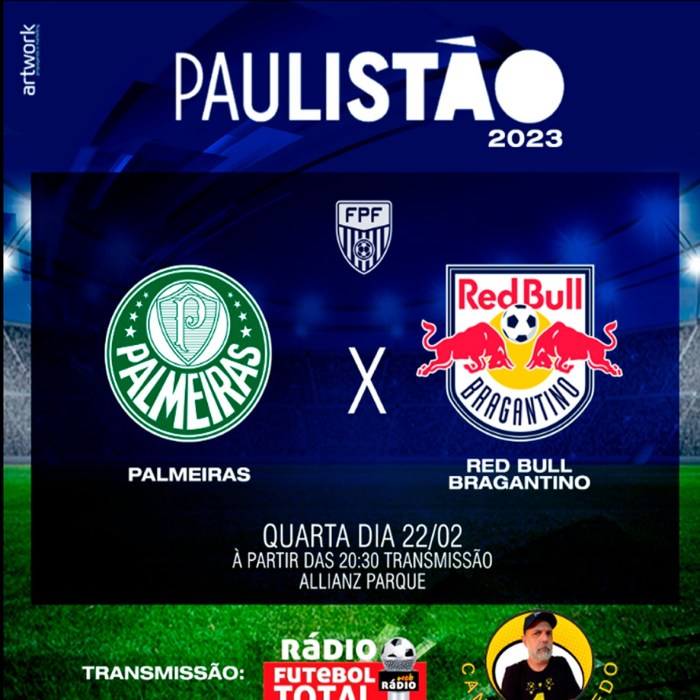Acompanhe conosco o jogo Palmeiras vs Red Bull Bragantino pela Rádio Futebol Total, acessando: