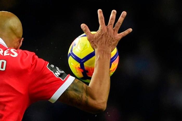 Trocando em miúdos: se a bola bater no braço de um jogador, AZAR O DELE! E é por isso que vemos tantos pênaltis mal marcados…