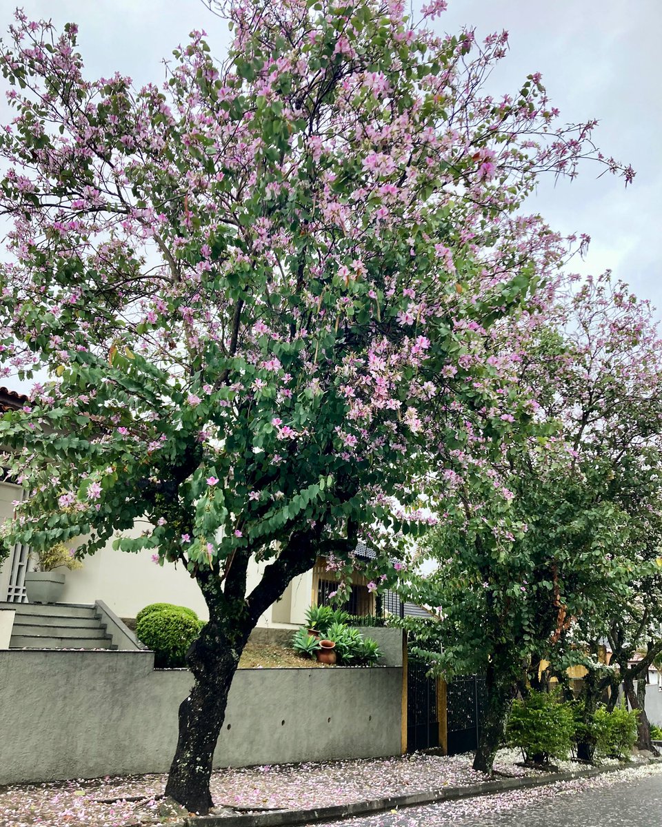 A beleza dos manacás tão floridos nesta época do ano! Está tudo colorido nas árvores e no chão.