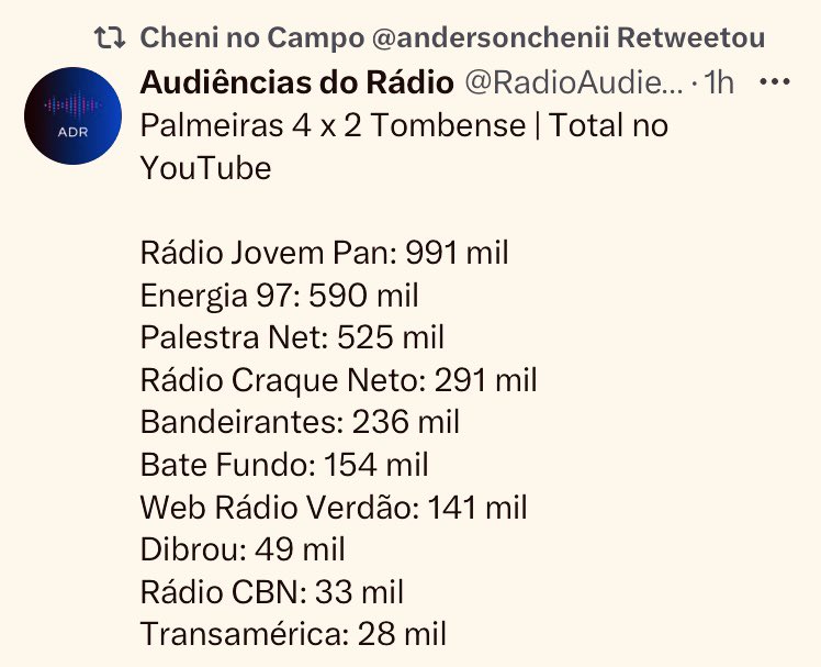 Quase 1 milhão de ouvintes, como no caso da JP, provavelmente é por conta de quem entra e sai no App. São “ouvintes repetidos”, creio eu. Ou não?