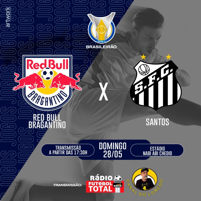 Acompanhe conosco o jogo do Red Bull Bragantino vs Santos pela Rádio Futebol Total, acessando: