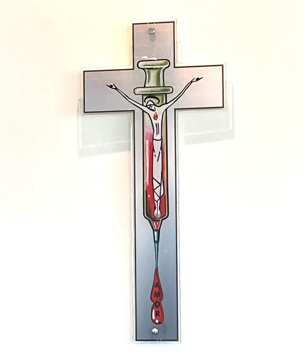 Toda vez que venho ao HUSF e vejo essa cruz com o Sangue de Cristo pingando em gotas 🩸 com a palavra “AMOR”, fico pensativo e impressionado.