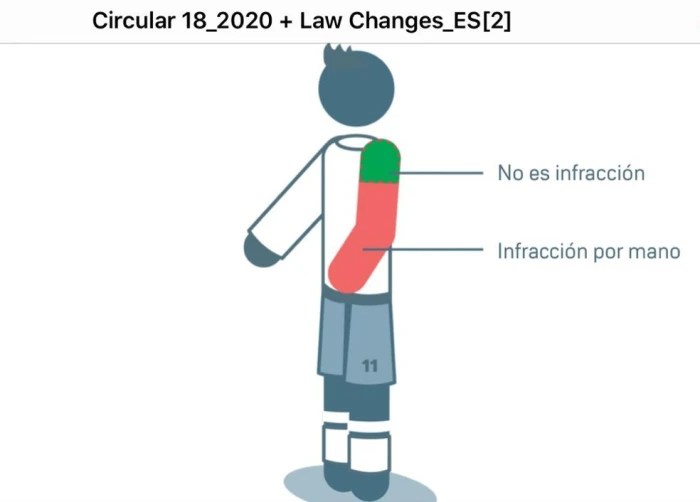 A propósito, em 2020, a FIFA definiu o que é mão / braço infracional, delimitando o limite das axilas, e esclarecendo que ombro não é infração. Vide aqui nesse link e veja a ilustração da International Board abaixo: https://pergunteaoarbitro.wordpress.com/2020/08/07/as-novas-regras-do-futebol-e-as-orientacoes-da-cbf-para-os-juizes-no-brasileirao/