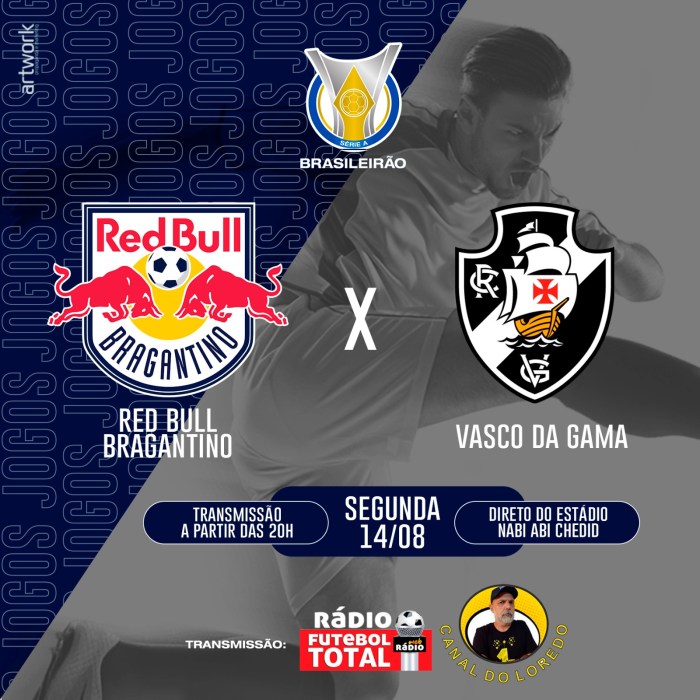 Acompanhe conosco o jogo do Red Bull Bragantino x Vasco da Gama pela Rádio Futebol Total, acessando: