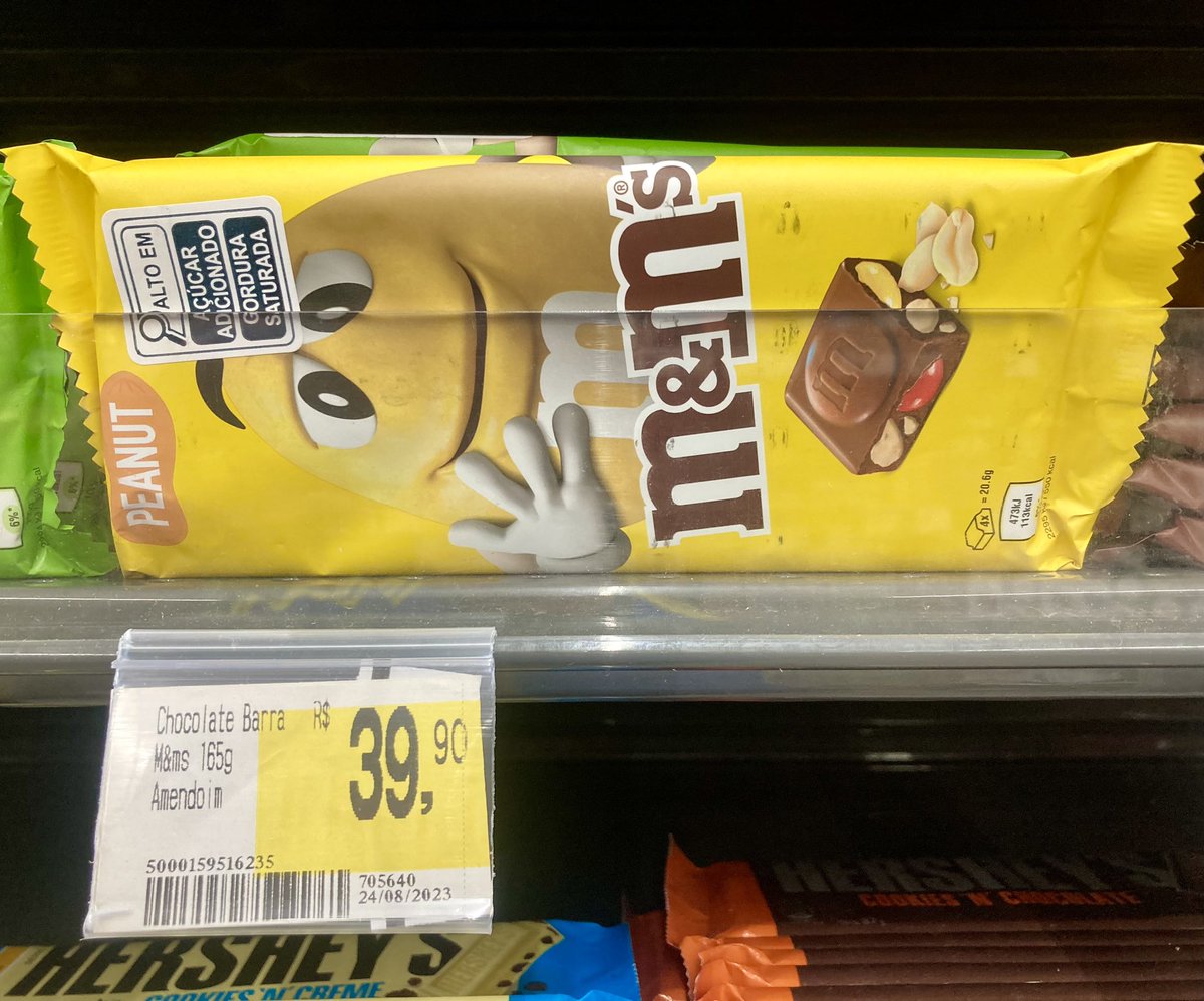 M&M de amendoim é uma delícia. Em barra, não sei. E por esse preço… não ficarei sabendo.