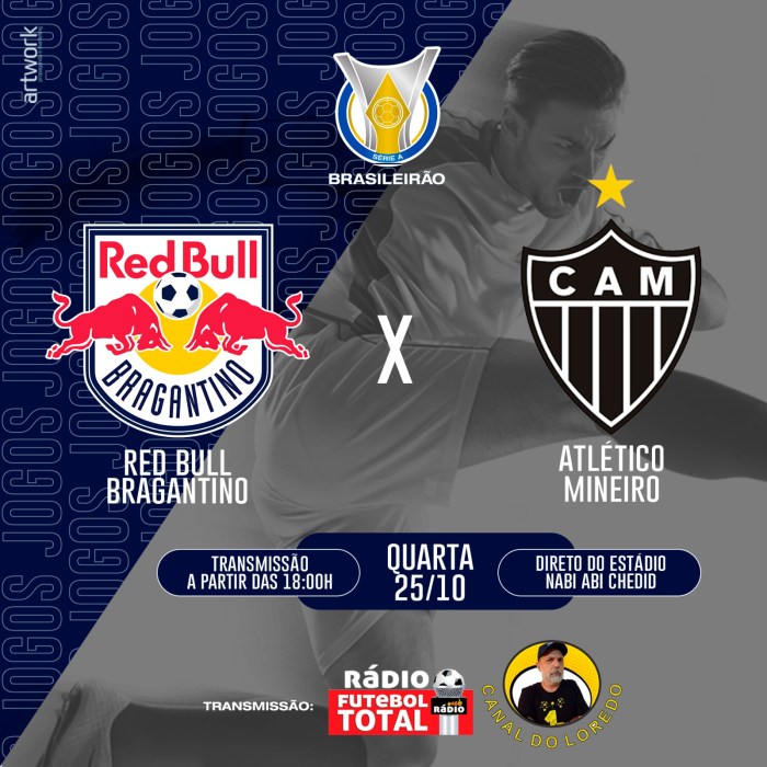 Acompanhe conosco o jogo do Red Bull Bragantino x Atlético Mineiro pela Rádio Futebol Total, acessando: