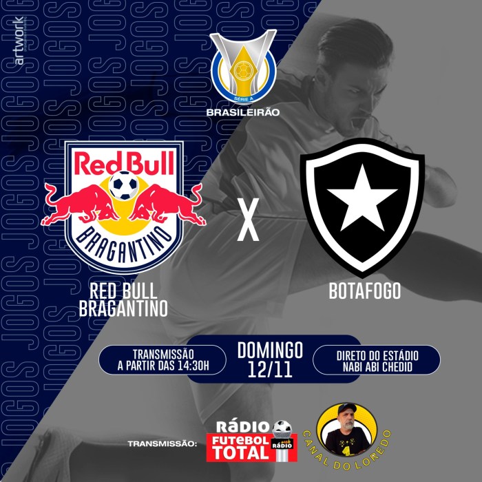 Acompanhe conosco o jogo do Red Bull Bragantino x Botafogo pela Rádio Futebol Total, acessando: