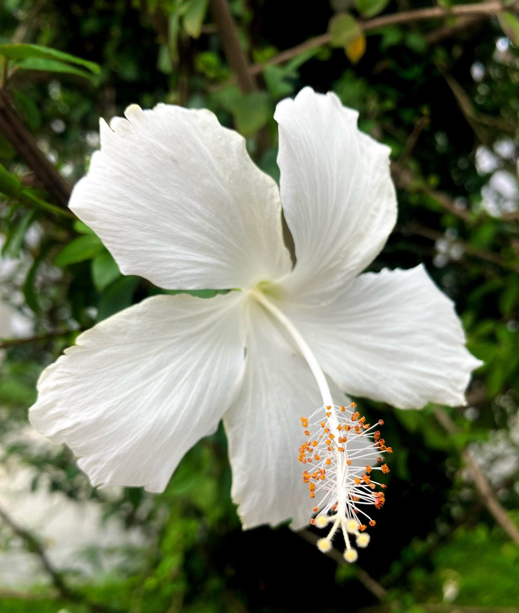 Estou suado, cansado e feliz, alongando e curtindo a beleza da natureza. Hoje, com essas delicadas plantas: hibiscos brancos.