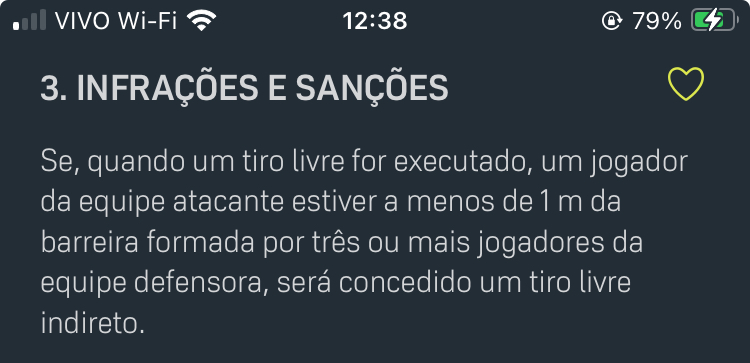 Na cobrança de falta, ao não manter a distância de 1 metro da barreira do Corinthians e um palmeirense tocar a bola, deveria-se ter marcado tiro livre indireto ao Timão.