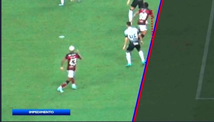 Não estaríamos discutindo: Gabigol não parece estar em posição legal, com o calcanhar do corintiano dando condição a ele, pois o ombro (que é a última parte jogável) estando atrás da linha?