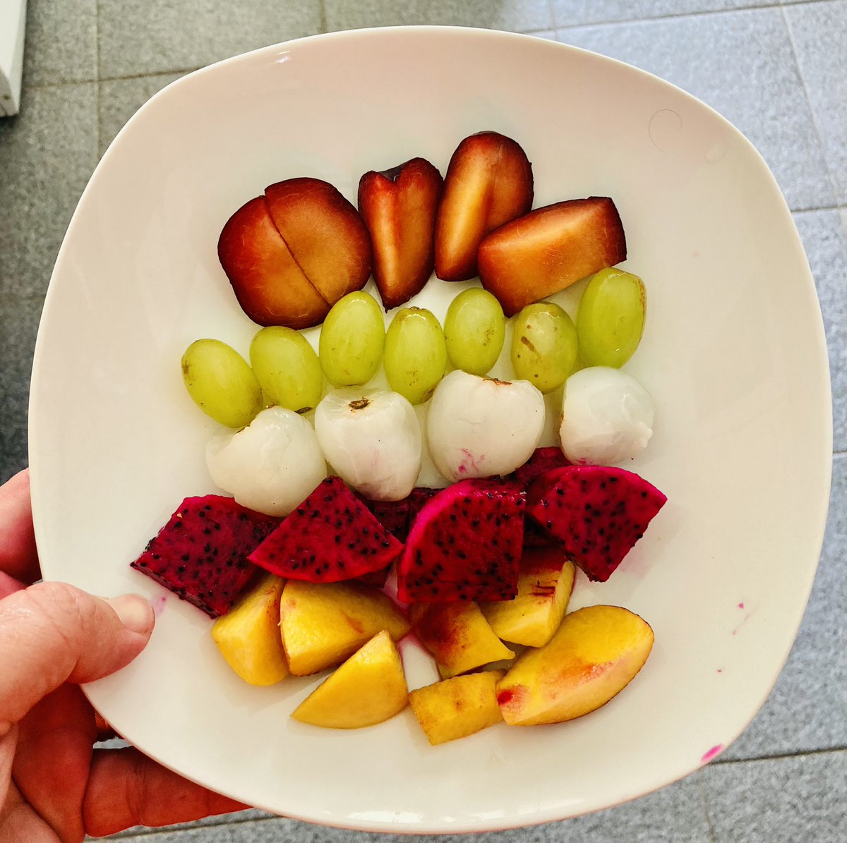 Hora das frutas saudáveis: hoje temos ameixa, uva, lichia, pitaya e pêssego!