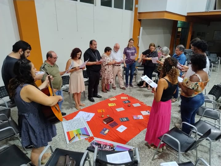 Após a acolhida com boas vindas e cânticos, iniciando o Oficio Divino das Comunidades, foi proclamado o Evangelho de Marcos (2,1-12), seguido de reflexão e partilha. Após este momento, fazendo memória da atividade realizada em novembro passado, no Sindicato dos Bancários, o Cine Pipoca, com a exibição do filme “Orações para Boby”, que aborda o tema LGBT, com a participação de bom público, que no final da exibição participou de uma Roda de Conversa, mediada pelo bispo Dom Arnaldo Carvalheiro Neto.
