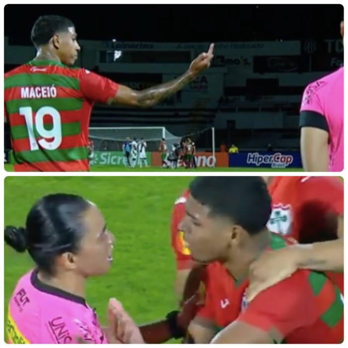 Alguém poderá contestar que foi revide a uma possível provocação pontepretana. Se houve, deu sorte quem provocou (que poderia ser punido com Advertência Verbal, Cartão Amarelo ou Vermelho), pois não foi flagrado. E azar de Maceió, que escancarou o dedo do meio, muito próximo à jovem quarta-árbitra Marianna Nanni Batalha.