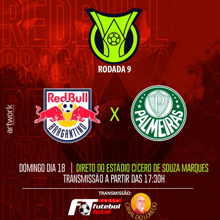 Acompanhe conosco o jogo entre Red Bull Bragantino vs Palmeiras pela Rádio Futebol Total, acessando: