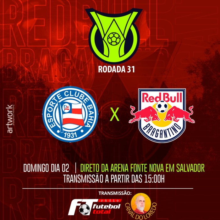 Acompanhe conosco o jogo entre Bahia x Red Bull Bragantino pela Rádio Futebol Total, acessando: